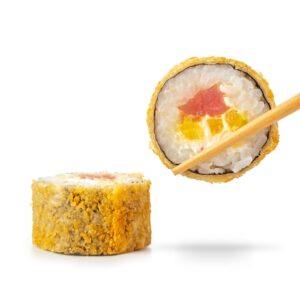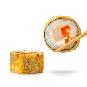 Рис, нори, сыр, окунь, дайкон, омлет томаго, темпура, соус терияки