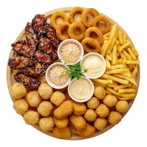 Фирменные крылышки, луковые колечки, наггетсы, картофель фри, сырные шарики, чикен болл, 2 спайси соуса, 2 сырных